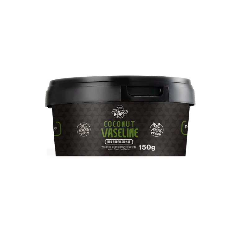A Coconut Vaseline MBoah é a primeira vaselina enriquecida com óleo de coco, criada para cuidar da pele durante o procedimento da tatuagem.